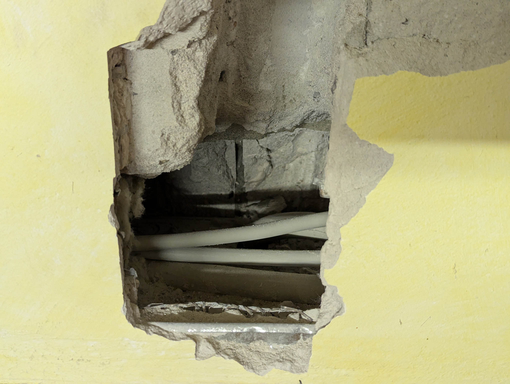 War letztlich auch nicht so schwer, weil die meisten Kabel in dem offenen Bereich direkt über dem ZS liegen - durch Dämmwolle von der Gipswand getrennt. Darüber ist eine massive Kalksandsteinwand, die ich tlw. aufgestemmt habe, damit man die Kabel gut verlegen kann.