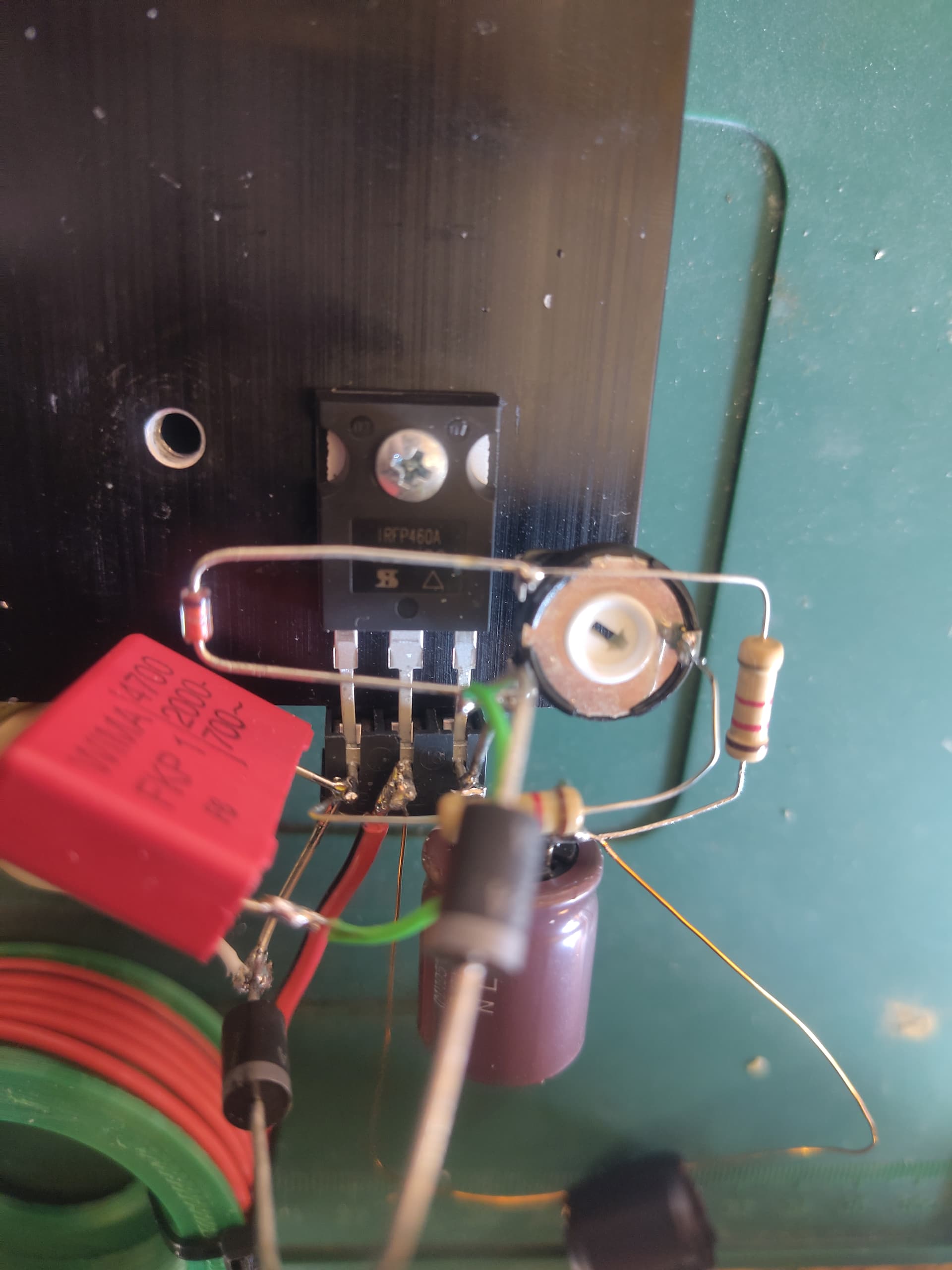 Hallo grüß dich Gandalf, man muß bei diesem hohen Frequenzen die Windungszahlen sehr genau einhalten, mit der Primärseite kann man das ganze noch etwas abstimmen, Zentimeter für Zentimeter kann man dabei etwas nachregulieren. Mit dem Multimeter am Gate , kann man gut