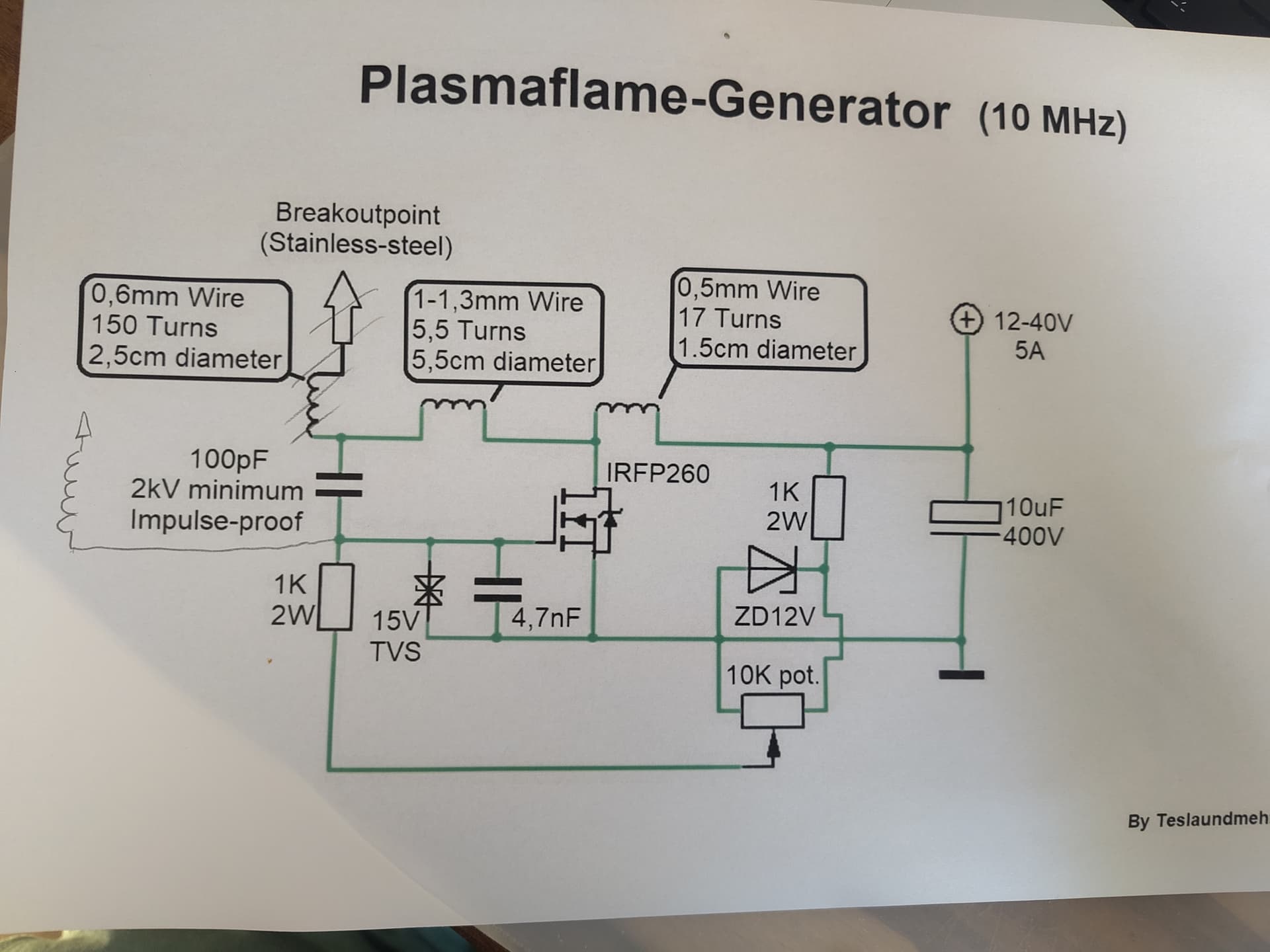Das einzige was im Endeffekt noch nicht gleich zum Schaltplan von Teslaundmehr ist, sind die Drahtdicken. Ich habe keinen 0,6mm Draht, nur 0,4mm. Und wenn man die Spule dafür etwas in die Länge zieht, relativiert sich das doch oder?
