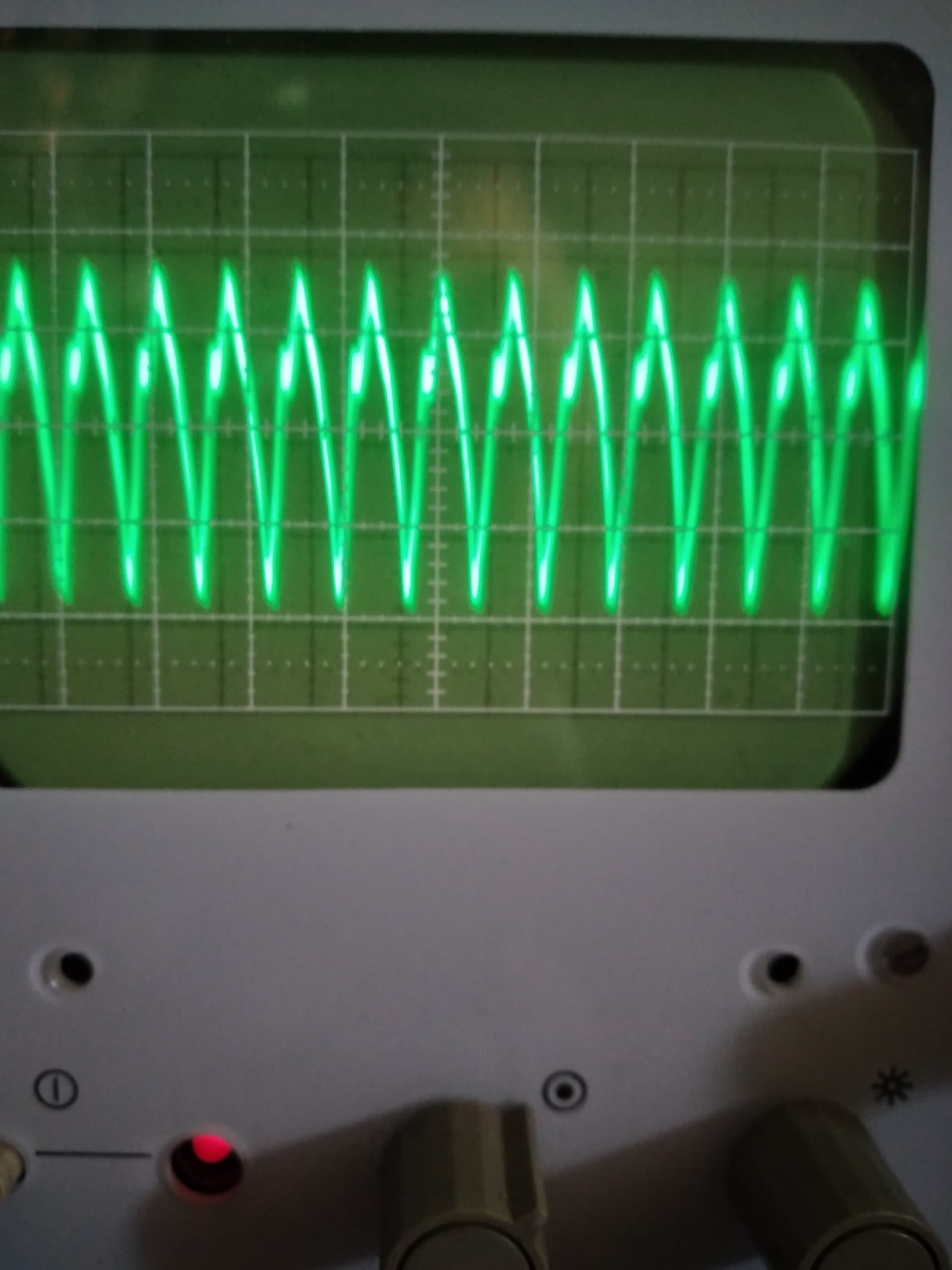 Hallo und einen schönen guten Freitagnachmittag, die ca 4 - 5 Volt vom Poti braucht das Gate schon, plus die Spannung vom Fußpunkt der Sekundärseite, damit dieses durchschaltet. In Anschluss noch ein Bildchen vom Gatesignal vom meiner Plasmaflame Teslacoil, hier sieht man auch ein kurzes Ringing, leider liefert so ein altes Röhren Oszi kein genaues Bildchen