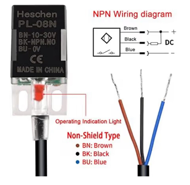 Danke für die Fotos. Die Näherungsschalter, die ich hier habe reagieren bei ca 4mm. Bei deinem dürfte das etwas weiter sein, oder?