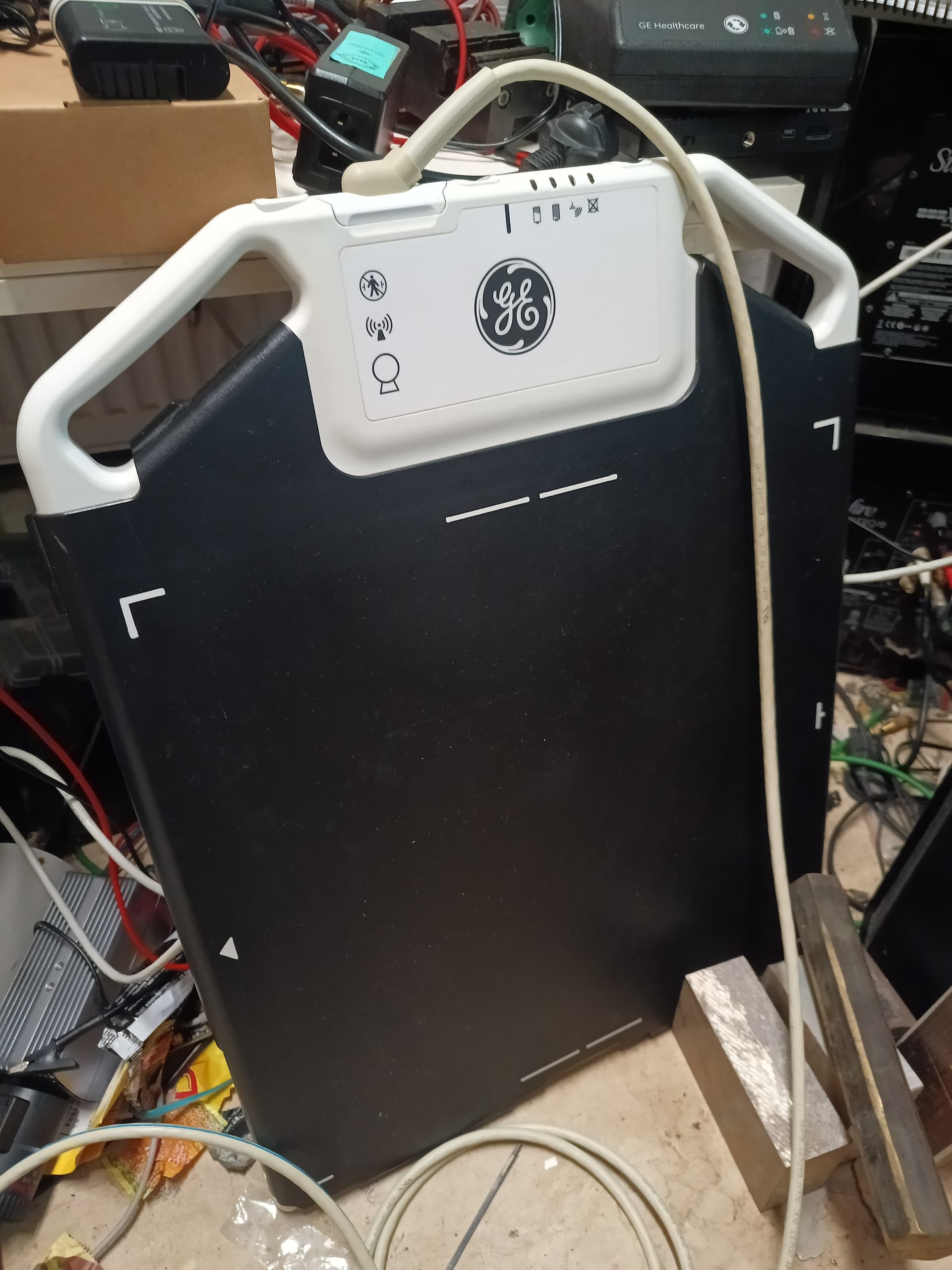 Es geht auch an und sieht nicht aus als wäre es defekt…. wobei der detektor ein 40x40cm CsI szintillator in einer glasplatte ist, ein sturz und das ding ist hinüber.