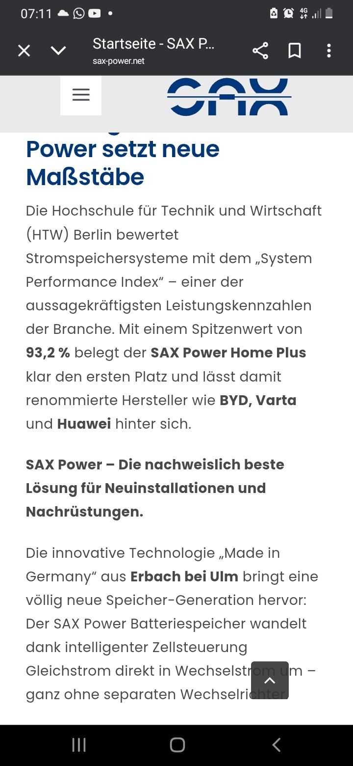 Ja, SAX hat da wohl eine effizientere Wandlertechnik verbaut mit SiC-Halbleitern. Es gibt auch diese Multilevel-Inverter, da gibt es gar keine klassischen Gleichrichter (dioden) mehr, sondern alles wird ĂŒber Mosfets und eine ausgeklĂŒgelte Ansteuerung geregelt. So wie die Sinuswelle digital zusammengesetzt wird, so âbauenâ die aus DC dann die AC-Kurven. Ist effizient, aber komplex im Aufbau und bisher eher experimentell und teuer. M.W. hat SAX diese Multilevel-Technik noch nicht implementiert, sondern die arbeiten einfach mit der neusten Mosfet-Technologie.