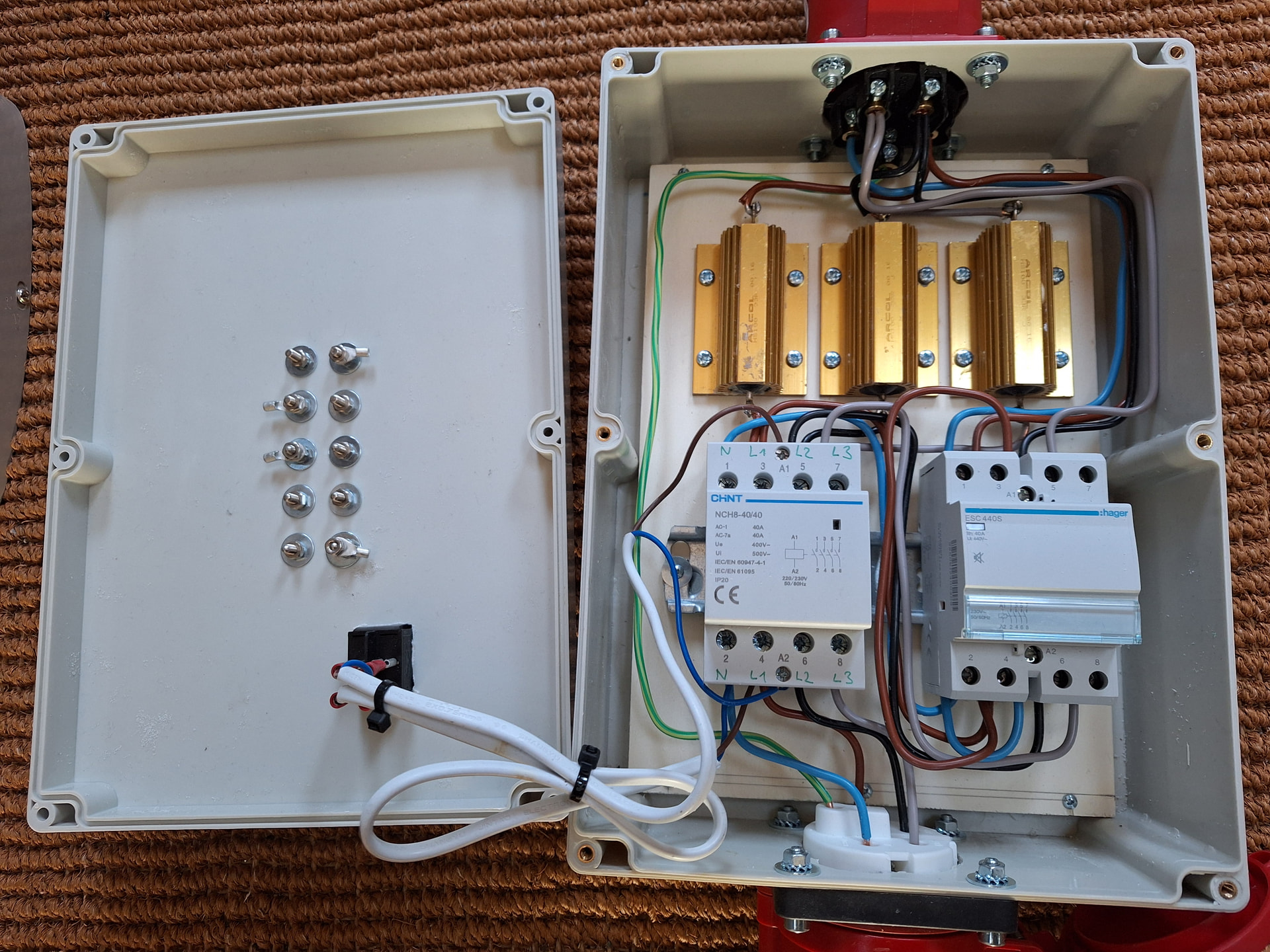 Die Verwendung von Solid State Relais hatte ich mir übrigens am Anfang auch überlegt, habe dann aber aus Sicherheitsgründen die mechanischen Schütze vorgezogen. Bei den Solid State Relais hatte ich Bedenken, dass sie bei Überlast resp. einem Defekt plötzlich dauerhaft leiten könnten und man dann die Box nicht mehr abschalten kann, was ich bei meinen Versuchen definitiv vermeiden will.